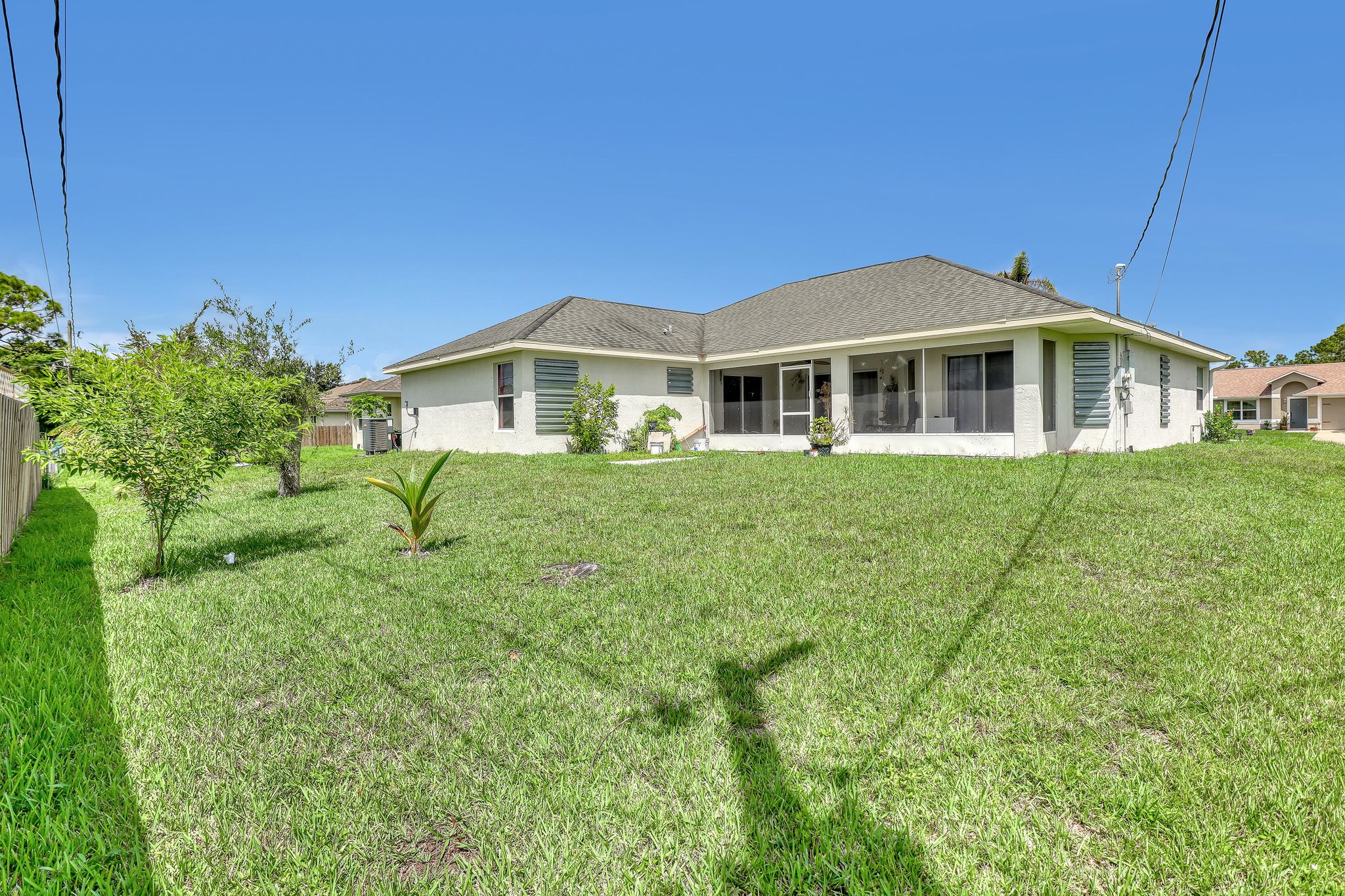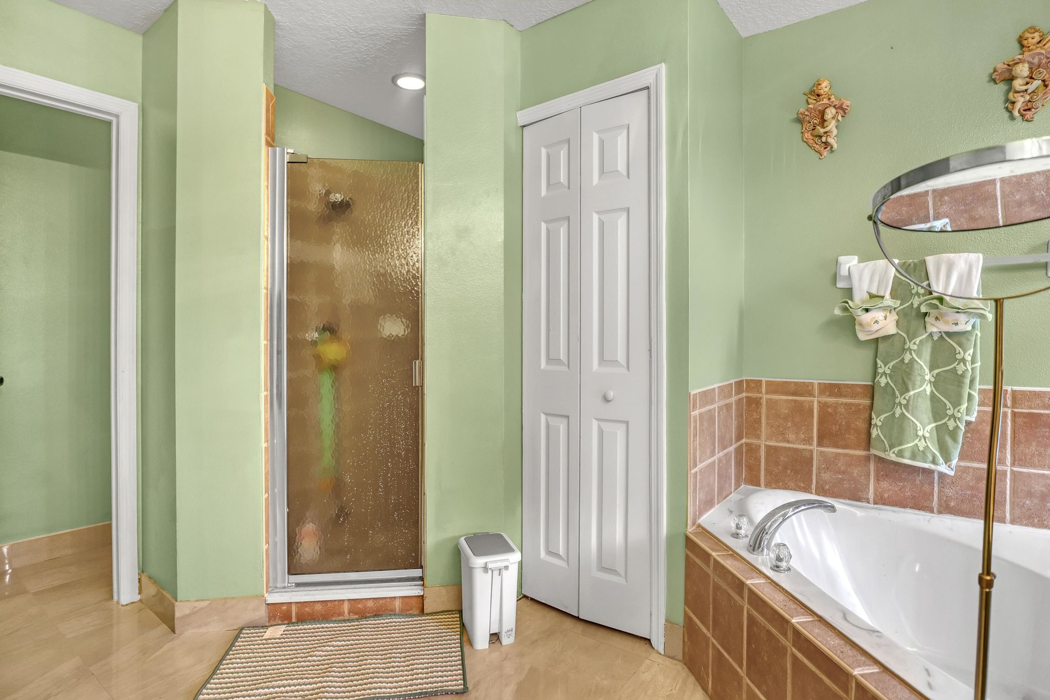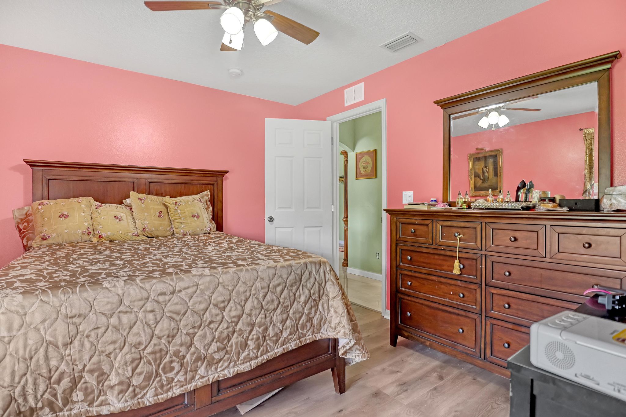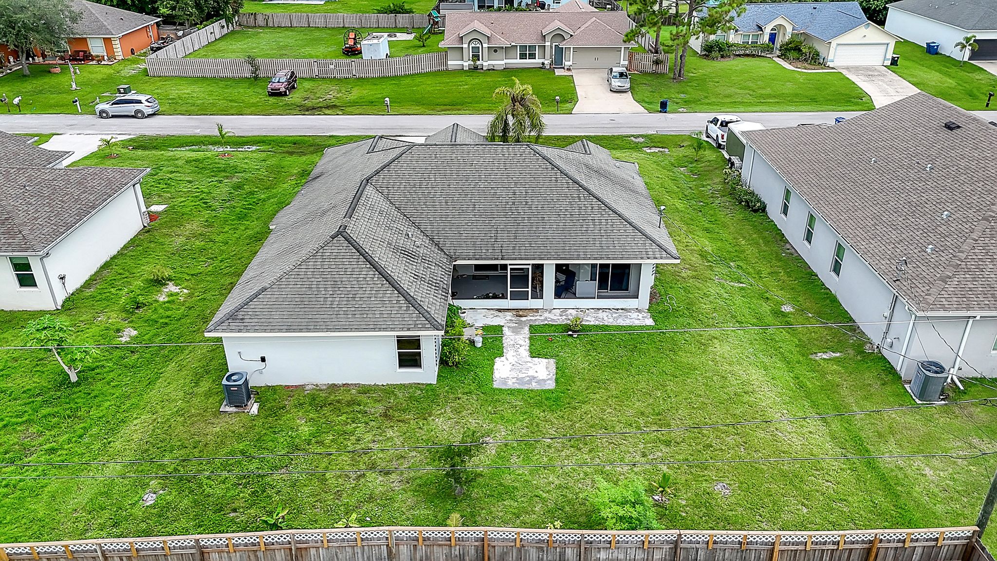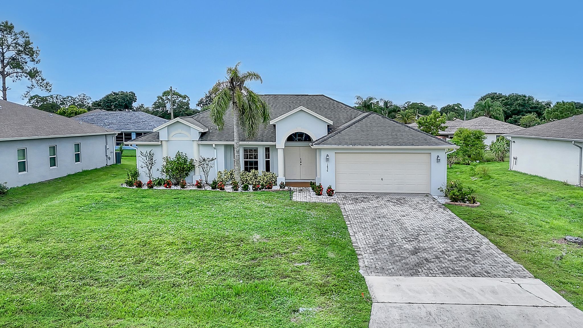 Step into this spacious Palm Bay home with a welcoming double-door entry and an open floor plan filled with natural light. High ceilings, arched doorways, and a thoughtfully designed layout create a warm and inviting atmosphere. The main suite offers a tray ceiling, dual walk-in closets, and private access to the screened patio. The main bath is designed for relaxation, complete with a soaking tub, marble countertops, double sinks, a separate shower, and dual linen closets. All bedrooms include walk-in closets, providing excellent storage. Tile and newer laminate flooring throughout make upkeep simple, and the large backyard is perfect for outdoor living and entertaining. Located near beaches, shopping, dining, and theme parks, this home combines comfort and convenience. Don't miss the opportunity to make it yours—schedule a showing today!